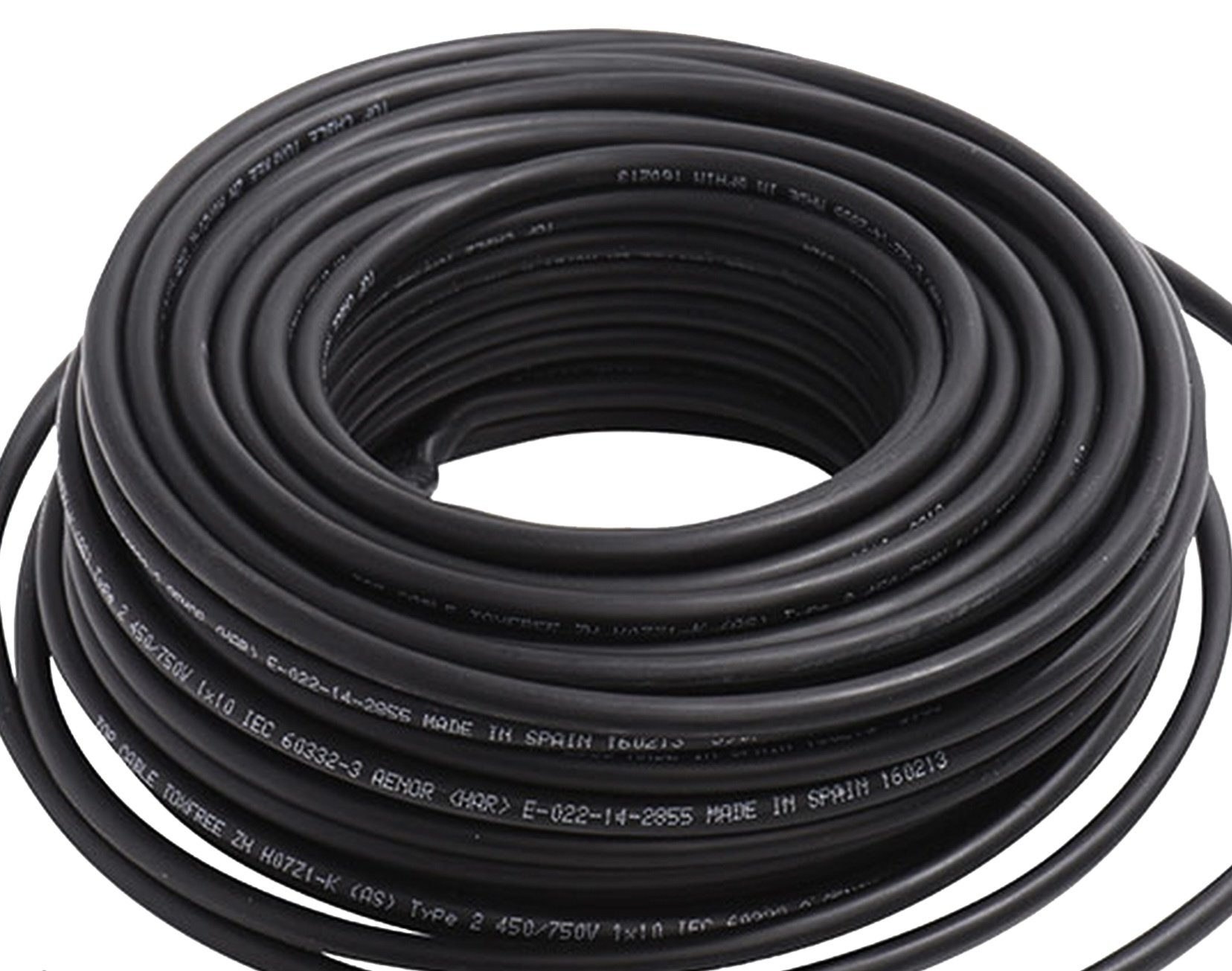Zeer goede kwaliteit, soepele en makkelijk buigzame, accukabel (50mm2) voor o.a. het verlengen van de aansluitkabel tussen de omvormer en de accu.