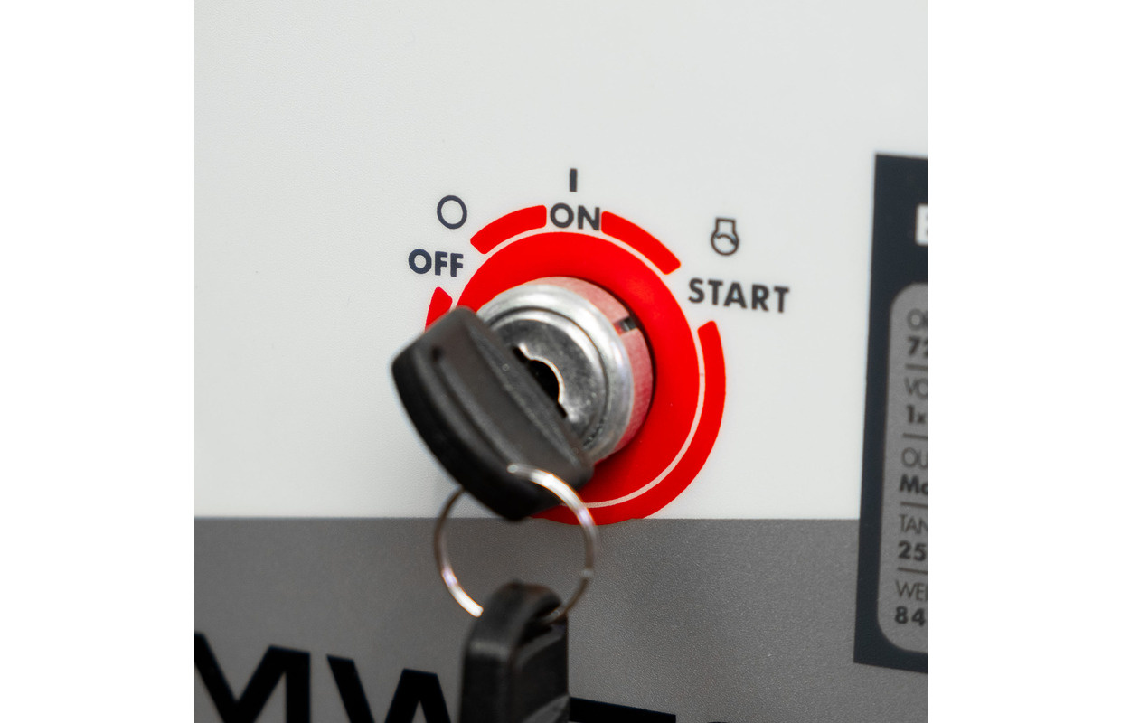 - Elektrische start met meegeleverde batterij. Manueel starten met startkoord blijft ook mogelijk