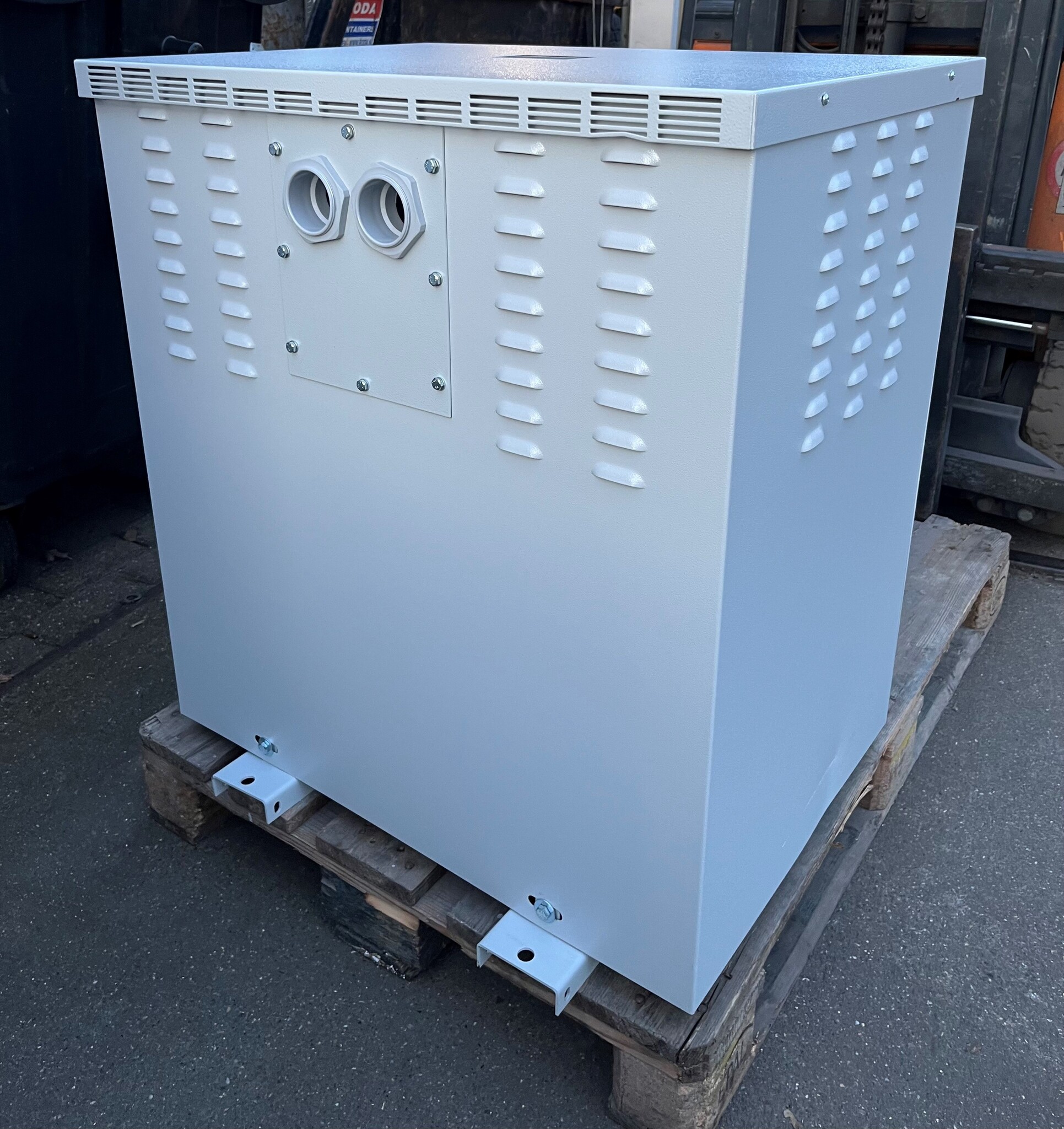 Drie-fasige transformator met galvanische scheiding tussen primaire en secundaire wikkelingen, geschikt voor hoofdzakelijk 3-fasige belasting en beperkte 1-fasige belastingen met een onbalans van max. 25%. De voornaamste eigenschap van het toestel is zijn galvanische scheiding waardoor secindair een nader netsysteem kan worden opgezet en ook een elektrisch verlies op de belasting zich niet overzet op het net en omgekeerd.