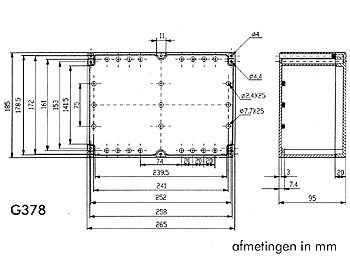 Het deksel en de bodemplaat zijn uitgerust met een tand-en-groef systeem met een dichting in neopreen. De openingen voor wandmontage en voor de schroeven van het deksel bevinden zich buiten het verzegelde gedeelte zodat stof noch vochtigheid er kunnen in doordringen. Sleuven aan de binnenkant : voor verticale montage van PCB's